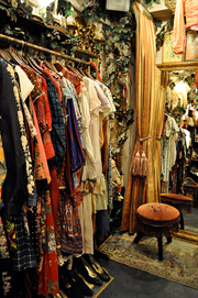 商品構成はすべてレディス。チェコ・ドイツ・オーストリア等のヨーロッパ古着とアメリカの古着を扱っている。古着の年代が持つ価値よりもデザインや世界観を重視しており、時には街で流行っているトレンドのアイテムを古着で打ち出すこともあるという。2010年春夏シーズンは野村さんが特に興味を持つ、チェコやオーストリアの民族衣装、70年代のワンピースが充実。また、野村さんの「DOLLY(ドリー)」や、「Reinette et mirabell(レネット・ミラベル)」等のアクセサリーも揃う。価格帯は、スカート3,000円〜、ワンピース6,000円〜、靴5,000円〜、アクセサリー1,000円〜。