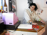「知人の紹介でキタコレビルを訪れた時、とても興奮した!みんなが作ったリメイクアイテムを見て、インスピレーションが湧いたの。クリエイティビティが刺激されて、私もやりたい!もっとやりたい!って思った。今は、キタコレビルにいるみんなが私の先生よ」(レイチェルさん)。
