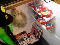 内装はすべてレイチェルさんの手作り。店内中央には、大好きな80年代の映画をイメージしたレジカウンターを設け、試着室には友人のヘアメイクアーティストによるアートワークを施した。また電飾パーツやパチンコ台、ゴールドのピースマンなどユニークなアイテムで溢れ、狭い空間ながら独自の「ililワールド」が広がっている。