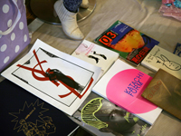 告知は店頭とウェブサイト、そして各出店者のブログ程度だったというが、オープン1時間もしないうちにフロアはほぼ満員状態の盛況。参加クリエイターそれぞれのファンと、出店者の友達と思われる、明らかにクリエイティブな仕事をしていそうなおしゃれ感のある“クリエイティブクラス”の人が多かった。一般の参加者も、ファッションやアートへの関心が高そうな客層が集まっていたようだ。会場の雰囲気は、フリマというよりも、例えていえば展覧会のレセプションに近いといえばご理解いただけるだろうか。親密な空気が漂っているが、内輪だけというクローズ感が薄いのが面白い。
