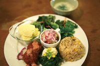 運営は「NO IDEA」。代表を務める永井祐介さん(24歳)を含め、スタッフ5名は全員が20代(2010年4月現在)だ。永井さんがロンドン留学中に出会った仲間とともに、Tシャツの制作・販売などやウェブサイトのデザインを手がけたのが始まりだが、現在の物件に出会ったことを機に「VACANT」の運営をスタート。以来、店内の内装からウェブサイトの制作、フライヤー等のデザインに至るまで、運営は基本的に自分たち自身で手がけているという。外壁の打ちっぱなしのコンクリートとは一転、木が多用された内装はDIY精神溢れるオルタナティブな雰囲気。1階では飲食や展示などの他にも本やアートグッズ等の物販も行っているが、おもしろいのはふだん客が出入りする1階のスペースで「NO IDEA」のスタッフがパソコンを並べて仕事を行っていること。スタッフ用の特定の席は設けず、机も可動式にして、月に1度は“模様替え”と称してレイアウトや内装をいじったりするという。こんなところにも、「VACANT」ならではの、型にはまらない姿勢が表れているようだ。