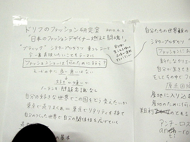 2010年4月、モードからストリート、生産、ジャーナリズムの問題まで、ファッションに関わるあらゆる局面の現在と未来について語るオープンなシンポジウム「ドリフのファッション研究室」がスタートし、注目を集めている。