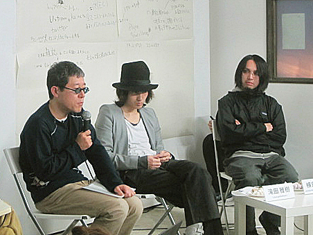 右から『DROP』の編集長の横田大介さん、『changefashion』の滝田雅樹さん、そして、「6月に復刊」というビッグニュースを発表してくださった元『STUDIO VOICE』の編集長加藤陽之さん。