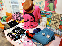 オープン時には『世界の終りのgalaxxxy』と称した西島大介さんの展覧会を開催。店内中央には、漫画家・西島さんの作品やコラボ商品を集めたコーナーを設置。イラスト入りのTシャツや缶バッヂ、著書を販売し、漫画キャラクターのオブジェや原画を展示している。