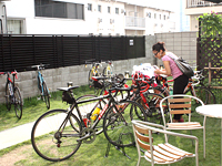 中庭には60台の駐輪が可能だが、休日は満車になることもあるそうだ。しかも外の通りからは隔てられた環境にあるので、路上駐輪で懸念される盗難のリスクも小さい。1台数十万円、時に100万円を超えることもあるロードバイクのユーザーにとって、この心理的な安心感は大きいだろう。同社では「なるしまフレンド立川店(http://www.nalsimafrend.jp/shop/tachikawa.html)」にも休憩所を設けるほか、八王子にも「八王子E-D」という無料の休憩所を運営している。
