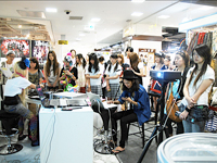 また、期間中は毎日、イベントを開催しているのも特徴だ。たとえば、「Grimoire」と読者モデルによるトークセッションや、「galaxxxy」が選ぶクリエイターによるライブペインティング×DJライブなど、各ショップが趣向を凝らしている。1日限定のコラボレーションもあり、“ANIME×FASHION×NOISY ELECTRO”をコンセプトにしたイベント「電刃(デンパ)」によるDJライブ、TWEE GRRRLS CLUBという女の子6人のDJユニットがレコードや雑貨などを扱うViOLET AND CLAiREのショップ・DJ・トークセッション、 fancyHIMという東京のファッショニスタが集結するパーティがプロデュースするショップ、80’sのポップなディスコをイメージとしたレディースの古着店Spank!のワークショップなど、各ショップのファンや「DROP」ファンの若者たちで賑わっていた。ウェブサイトがリアルショップを構えて物を販売することはありきたりな方法なので、よりおもしろいことを発信するために、毎日コンテンツを変えているのだそうだ。