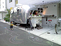 「ボディはエアストリームというトレーラーです。キャンピングカー仕様になっていることがほとんどなので、販売車仕様になっているのは珍しいと思います。フロリダで子ども向けのジュースやシェーブアイスの販売車として利用されていたようです。ネットで見つけた時、自分がイメージしていた販売車とぴったりだったので、一念発起して購入しました」(猪瀬さん)