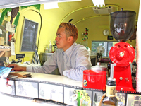 2010年3月、渋谷区神泉町に移動販売コーヒーショップ「レオンカーゴ」がオープンした。オーナーの猪瀬孔明(37歳)さんはVシネマを中心に活躍する役者さんである。俳優業と平行してバーやクラブで働いていたが、子供ができたのをきっかけに、「毎朝酔っ払って帰ってくるのを見せたくなかったし、朝、子供達に『行ってらっしゃい』と見送られたかったので」、身内に紹介された空きスペースを利用して「レオン・カーゴ」をオープンした。飲食業界での経験が長かったこともあり、「オフィス街に近く、ある程度人通りのあるこの立地ならお店をやっていけそう」と感じたそう。