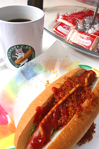 コーヒーの他に軽食も販売している。とくにピーナッツバタートーストとホットドッグが人気だそう。