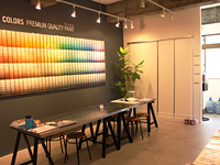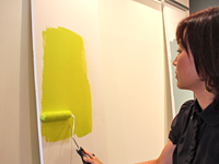 「例えばアメリカでは引越の話題になると必ず『壁の色は何色?壁紙は?』と聞かれるほど、ペイントが生活に浸透していますが、日本のビルや家の壁は、白、ベージュ、グレーがほとんどという状況です。カーテンを替えるように壁の色を変化させることで、生活を自分流にできるのは楽しいこと。そのためにも、いろんな人にペイントの手軽さや自由さを知って欲しいと思っています」(カラーワークス専務取締役/秋山さん)。
