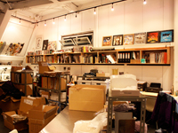 今回、移転したのは、東急東横線学芸大学駅から徒歩約5分の駒沢通り沿い。元は材木店だったという一軒家は、2階まで吹き抜けになった開放感ある造り。内装は中目黒のセレクトショップ「vender(ベンダー)」なども手がける(株)メトロノームの山嵜廣和氏によるもので、1階がレコードショップとディストリビューション部、2階にプロダクション部と、「BAL(バル)」、(株)メトロノームのオフィスいう構成になっている。さらに、1階のスペースには、「BAL(バル)」のフラッグシップストアが同居。建物内を自由に行き来できる設計になっており、全体が異業種が集うシェアオフィスのような形態となっている。