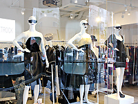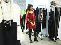 現在の客層は20代後半から40代の女性がメインで、移転後は来店数も増加。42平方メートルの店舗をスケルトン状態から大改装したスペースに、作りやデザインのよさが伝わりやすいブラックドレスを中心に、常時、200〜300点の在庫を揃えている。ドレスは1万円後半から3万円後半がメインで、パーティに使える大振りのアクセサリーは1万円前後が中心。衣裳のレンタルもおこなっている。