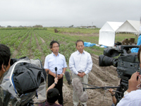 綿栽培の打診にまず手をあげた、仙台東部地域綿の花生産組合組合長赤坂芳則氏は、「将来どうするか、というときに綿の話を聞き、宿命的なものを感じた。ここを原野ではなく、農業そのものの再生の場にしたい」と、交流会で力強く語った。