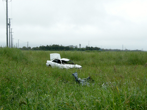 ところどころに津波の被害を象徴するような流木やクルマなどが残してある。