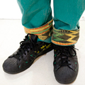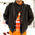 今日のポイントはパンツです。切り返しと折った時の模様がカワイイので気に入ってます。自分のスタイルは古着ミックスのストリート系です。トップガンの鉄板キャップとか帽子もかぶります。基本、毎日がカラフルですね。一番好きなのは黒×赤。