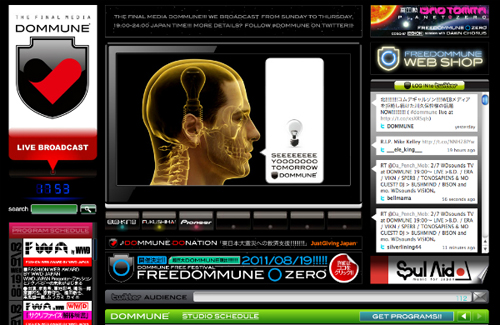 アーティスト・宇川直宏さんが2010年3月にスタートしたライブストリーミング・スタジオ/チャンネル「DOMMUNE」。渋谷区恵比寿の地下スタジオから月〜木曜日にかけてUSTREAMで配信しているトークやライブは、その多彩さに加えてハイクォリティなサウンド、独特のリアルタイム感から瞬く間に人気を集め、日々その存在感を増している。