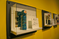 展示されたこけしをじっくり見てみると、その表情や意匠にはバリエーションがあることがわかる。こけしは基本的に円柱の胴体に球体の頭部が乗った形状なのだが、その範疇に収まらない形状のものもある。工人(こうじん)と呼ばれる職人の手によって作られたこけしには、ハンドメイドな工芸品としての魅力があることがわかる。