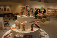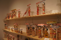ミッフィーこけしのような分りやすい例だけではなく、伝統的なこけしもまた、視線の置き方次第でポップな作品として楽しむことができるというのが本展のテーマ。特設ショップには伝統こけしやオリジナルのこけし雑貨、浅生ハルミンさんの創作こけしなどが幅広くラインナップされていた。