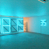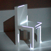 白いスチールで組み立てられた大きなクロス状の箱。煌めく白い閃...