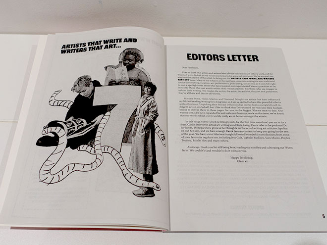 その中でも最近ロンドンのアートブック書店でよく見かける雑誌が『Worms(ワームス)』だ。『Worms』は「実験的でインディペンデントな作家たちの声を広めること」を掲げるロンドン発の文芸スタイル雑誌であり、出版社でもある。年2回の雑誌発行の他に、書籍の出版やライティングワークショップを手がけ、ポッドキャストの配信や、アートギャラリーでのブッククラブを月1回ペースで行うなど活動的だ。