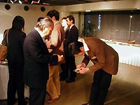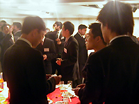 会場は、飲食業界はもちろんのこと、酒造・食品メーカーや商社、店舗設計関係の会社、マスコミなど200名を超える聴講者で満員。質疑応答も10名を超え、会場を移して催された交流会も大盛況。中島氏と柴田氏には名刺交換の順番を待つ行列ができただけでなく、聴講者同士も熱心に名刺交換をするなど、熱い飲食業界ならではの活気に溢れていた。