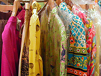 場所はビームスやストーミーの並ぶ通りを1本入った裏通り。壁をマホガニー調の木材と緑色で統一した約17坪の店内には、カラフルなアイテムが所狭しと並ぶ。内装のコンセプトはパイレーツ(海賊)。天井にランプを飾ったり陳列にトランクを使うなどといった演出が、どことなく古い海賊船のような雰囲気を醸しだしている。ボディにディスプレイされているのも頭にバンダナを巻き、アクセサリーをたくさん付けた海賊風のコーディネートだ。