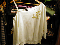 商品構成は、70〜80年代のアメリカ、フランスの女の子向け古着が中心。ドルマンスリーブやワンショルダーといった80 年代風デザインのトップスやサテン素材のイージーパンツなど一風変わった個性的な商品が多いのが大きな特徴だ。また古着だけでなく国内ブランドや同社のオリジナルブランドである『ZOOL』『TOPEKA PRAIDE』の新品商品、さらには同店オリジナルのリメイク古着も扱っている。古着と新品の割合は6:4。