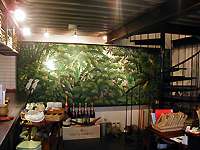 建物の1Fエントランスには、これまたアジアンリゾートを思わせる大きなジャングルの絵が壁一面に飾られており、その横にはキャンドルやフォトフレームなどアジアン雑貨を扱うショップが併設されている。