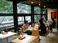 実は、このギャラリー案は、同店運営の委託先である (有)act growingからの提案もあってのこと。同社はカフェやバーなど飲食業界での勤務経験を持つスタッフ4名により、03年1月に設立されたばかり。代表の山岡純一郎さん(28歳)と鈴木さんが知り合いだったことから今回の共業が実現したのだそうだ。