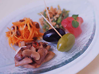 オリーブ、木の子のマリネ)