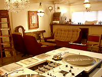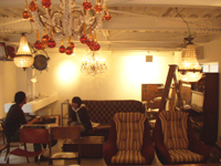 当初駐車場だった1Fがデザイン設計事務所、2Fはアンティークショップ、そして3Fが昼間はショップ兼打合せの場所として、夜は気のおけない仲間たちが気軽に集れるサロンとしてのバーという複合業態が完成。1Fはシンプル。2Fは重厚感溢れる男っぽい空間だが、3Fは壁や天井、DJブースなどが真っ白なミニマムモダンで統一されるなか、ヴィクトリア調のオーク材の重厚なアームチェアやテーブル、50年代のシャンデリアやガラス製品、ライト、ブラスのガラクタ(?)など、ちょっとクセのある品々が上手く溶け込み、独特の空間となっている。