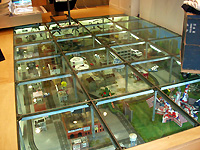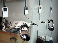 白を基調とした店内は約13.5坪。内装は、パリとNYを中心に活動するアーティスト集団のSurface To Airが担当。壁にステンシルのアート作品がディスプレイされていたり、床一面に巨大なジオラマが埋め込まれていたりと、インスタレーション感覚溢れるユニークな空間になっている。さらに天井からは4台のiPodが吊されており、ジャックに繋がれたヘッドフォンがガラス越しに外側に設置されている。iPodからはBBSのメンバーがセレクトした音楽が流れており、お客さんは店の外に居ながらにして音楽を聴くことができるというわけだ。