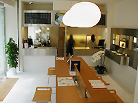 場所は、246沿いにある「スパイラル」の渋谷側の路地を入ったところで、飲食店も多く、骨董通りへの抜け道ということあってか常に人が行き交うエリアである。カフェやレストラン、和食屋、弁当屋などと軒を並べる同店は、白いタイルに囲まれた入口やガラス貼りの窓から見える工房の機具などから、一見歯科関係のエステサロン?に見えなくもない。