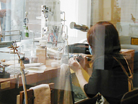 同店で行っているのは大きく分けると「リペア」と「リボーン」、「リデザイン」の3種類。リペアは、新品仕上げやサイズが合わなくなった指輪のサイズ調整、切れたチェーンの修復を行うもので、リボーンとリデザインはいわゆるリフォームのこと。たとえば、リボーンは、立て爪のダイヤのリングを埋め込みのリング枠に付け替えたり、イヤリングをペンダントトップに変更することなどを指す。リデザインとは、クロスペンダントをYラインネックレスとピアスにつくり変えるなど、付け足す・切る・変形させるといった加工を施したうえで全く形態の異なるものに仕立て直すことを指すのだそうだ。現在登録しているデザイナーや職人(技術者)は十数名ほどだが、さらに増やしていく予定だという。