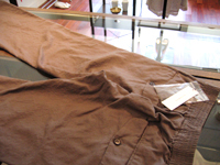 それもそのはず、生地の90%はオリジナルで、シャツの襟には裏芯を配してヨレを防止したり、スパッツの裾には微妙なレイヤードによるフリル感が演出されているなど、ちょこっとしたこだわりが個々のアイテムの随所に施されており、いかにもツウ好み。ちなみにボタンもオリジナルだとか。