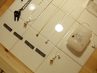 「Q-pot products」は、現在GARNIやBEAMS (JAPAN、YOKOHAMA、KASHIWA、WEST)などで取扱っている。運営元の(株)GRAMMEは、アクセサリーの製造・卸を20年以上にわたり手がけてきた会社で、それまでは某有名ブランドへのOEM提供がメインだったが、代表取締役の勢馬一正氏とデザイナーのワカマツさんは遠い親戚関係にあったことから、01年にオリジナルブランド「Q-pot products」をスタート。今年、初めての直営店を開くことになったのだという。ちなみに、プレスの若菜さんはワカマツさんの奥様。店長の戸浪隆博さんは義理の弟さんだとか。