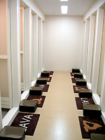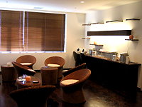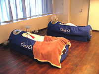 05年1月現在、会員数は400名余り。その90%は20代〜30代前半の女性だそうだ。総店舗面積は約130坪。エントランスを入ると、オーク調のフロアに白い壁、籐の椅子など、まるでアジアンリゾートのようなリラックスした空間が目の前に広がる。定員40名と30名の2つのスタジオは、それぞれ畳の色で「琥珀」「翡翠」という名前が付けられている。ベッカム選手をはじめ、数々のアスリートやハリウッドスターが使用しているらしい高濃度酸素カプセル「オアシスO2」のマシンが設置されているのも興味深い。