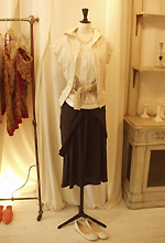 商品は、「n°11」のフルコレクションに加え、イタリアのアイ アム、フランスのマダム ア パリの靴など小物で一部セレクト商品も展開。またヨーロッパを中心に買いつけられた繊細なアンティークのアクセサリーも扱っている。さらにアンティークのドロワーズやキャミソールを使った一点ものリメイクラインも同店のみで限定販売している。