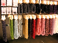 「店舗面積は約30坪。本店に比べると限られた品揃えになっています。ビーズのように手のこんだ作品を作る材料よりも、ラインストーンやパール、ターコイズなどの半貴石、作りやすい、扱い易いパーツが人気ですね」と言う岡さんの首もとにも、大粒のシャンデリアパーツをふんだんに使った、お手製のネックレスが輝いていた。実は、某女性誌に掲載されていたものをマネして作ってみたのだとか。