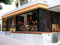 「店内は歩道より一段高く作られているので、道との距離が近いわりには落ち着いているんですよ。このスペースはパフォーマンス・イベントのときには舞台としても使います」 (伊藤さん)。