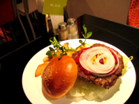 同店一番人気のメニュー「エムズバーガー」(840円)は、国内産100%のビーフ約180〜200グラムを用いた肉厚でボリュームのあるパテが自慢。都内でもなかなかお目にかかれない、本格的なアメリカンハンバーガーだ。付け合わせのフライドポテトも大盛りで思わず嬉しくなる。これなら食べ盛りの学生も大満足。実際、ランチタイムは大学生や会社員の常連客が多く、夜は10名以上での貸し切りパーティも可能。大学生が合コンで利用する事もあるとか。