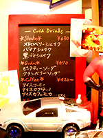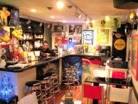 店内は赤を基調としたアメリカンダイナーの雰囲気。ある1人の常連さんがお土産にとキースヘリングのトイを置いていったことから、他のお客さんが、次々とザ・シンプソンズをはじめディズニーやスパイダーマンなどのアメキャラのフィギュアを置いていくようになり、あっという間に店内いっぱいになってしまったのだそうだ。