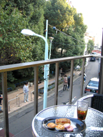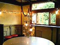 ターゲットは、キャットストリートでのショッピング途中の10〜20代前半の男女や、近隣のビジネスパーソンや専門学校の生徒など。場所柄、ファッションに敏感で好奇心旺盛な若者が多い。キャットストリートで一際目を引くイエローの外壁の店構えに、店内はダークな木目とステンレスの組合せの落ち着いた雰囲気。ガラスとステンレスを組み合わせた照明は、張さんのアイデアで特別に作らせたもの。2席あるテラス席は競争率が高い。店舗正面の幼稚園の木々が見事に借景となり、窓の外の緑がとても気持ちいい。