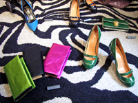 ヒールのパンプスと、同柄のウォレット。