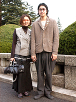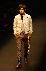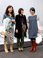 YAB-YUMは昔からブランド独特の世界観が好きで時々買っていましたが、ショーを見るのは今回が初めてです。期待通り、ストーリー性があり、やわらかく、手仕事の温もりが感じられてとても感動しました。やはり実力派という感じですね。夫婦で「Q-Pot」というオリジナルのアクセサリーを扱うショップをやっているんですが、いい刺激を受けました。他に好きなショップですか。うちは、ここ2、3年「フラボア夫婦」なんです。他には、ISSEI MIYAKEとかギャルソン、あと友人のブランド「インフルエンス」なんかをよく着てます。