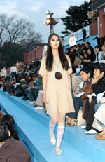 他には「ミントデザインズ」を見ました。音符柄の柄が目立っててかわいかったですね。スカートを肩にかけたり、手で引っ掛けて持ったりしているのがとても印象的でした。個人的には、「POTTO」や「ミントデザインズ」といった個性的なちょっと変わったデザインの服に惹かれます。