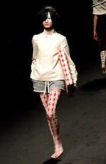 そんななか、JFWのちょうど1週間前にあたる3月11日に、人気女性向けファッションサイト『ガールズウォーカー』の、やはり“第2回目”となるファッションイベント「東京ガールズコレクション」が国立代々木競技場第一体育館で開催され、なんと昨年を5,500人上回る1万8,100人を1日で動員したというから驚く。いわゆる109系やお姉系ブランドがメインのファッションショーは、人気モデルの蝦原友里ちゃんや押切もえちゃん、土屋アンナちゃんなども登場。彼女たちが着用した服が実際に買えるという仕組みになっており、観客たちにとっては、ある意味「リアルクローズ」である。さらに今回は、「ART&Fashion=TOKYO」をテーマに、村上隆氏が主宰する「GEISAI#9」とコラボレーションをするなど、マーケット・オリエンテッドな展開に拍車がかかっており、ある意味今っぽい。