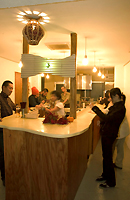 壁や天井、床はもちろんのこと、心地よい立ち呑み空間を演出しているゆがんだ木製のカウンター、ライティングなど、内装はすべてオフィスの本業でもある、フジロックなどのフェスティバル制作で活躍する美術スタッフの仲間達が手がけた。ふつうに食べてもらいやすい価格と、素材・味にこだわったというメニューは、オーガニック野菜の小売では草分け的存在として有名な「GAIA(ガイア)」をはじめ、直接つながった農家や、オーガニックパンで有名な「ルヴァン」、南米エクアドルからのフェアトレードのコーヒーなど、独自の仕入れルートでコストバランスにもこだわっている。