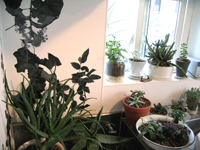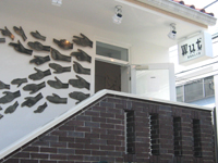 れた植木たち。壁面に描かれた葉っぱは