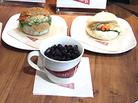 メニューもアジアンフードにこだわり、インドネシア産の最高級豆を使った『cafe-Bオリジナルブレンド』をはじめ、種類が豊富な中国茶、辛口のヌードル類などが揃っている。アジアのリゾートを意識したインテリアで統一し、店内中央にはアイランド型キッチンを配置。店内のモニターで自社の映画・ドラマの予告編やCMを流しているが、ポスターなどは控えめにし、あえて韓流ファン以外の客層にも入りやすい店舗作りを心掛けたという。